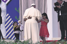 La misa que Francisco ofreció en español y en varias lenguas indígenas fue todo un programa político que abrazó los pisoteados derechos indígenas. El Papa anheló “una tierra prometida donde la opresión, el maltrato y la degradación no sean la moneda corriente”. Luego, el eje central de su discurso se centró en un fulgurante reconocimiento de los derechos y los padecimientos indígenas. No existe, en la historia, una palabra oficial tan fuerte. Francisco dijo “Muchas veces, de modo sistemático y estructural, los pueblos indígenas han sido incomprendidos y excluidos de la sociedad. Algunos han considerado inferiores sus valores, su cultura y sus tradiciones. Otros, mareados por el poder, el dinero y las leyes del mercado, los han despojado de sus tierras o han realizado acciones que las contaminaban. ¡Qué tristeza! Qué bien nos haría a todos hacer un examen de conciencia y aprender a decir: ¡perdón! El mundo de hoy, despojado por la cultura del descarte, los necesita”. El Papa alabó como un ejemplo la relación “armónica” de los pueblos indígenas con la naturaleza y volvió a recomendar a los poderes políticos que imitaran esa “sabiduría”. Luego de las palabras del Papa, el actual obispo de San Cristóbal de las Casas, Felipe Arizmendi, leyó un texto elaborado por las comunidades indígenas en el que estas dicen: “Aunque muchas personas nos desprecian, tú has querido visitarnos y nos has tomado en cuenta. Llévanos en tu corazón con nuestra cultura, con las injusticias que sufrimos, con el dolor de nuestros enfermos. Gracias por haber aprobado el uso en la liturgia de nuestros idiomas. Queremos hablarle a Dios en nuestra lengua”.